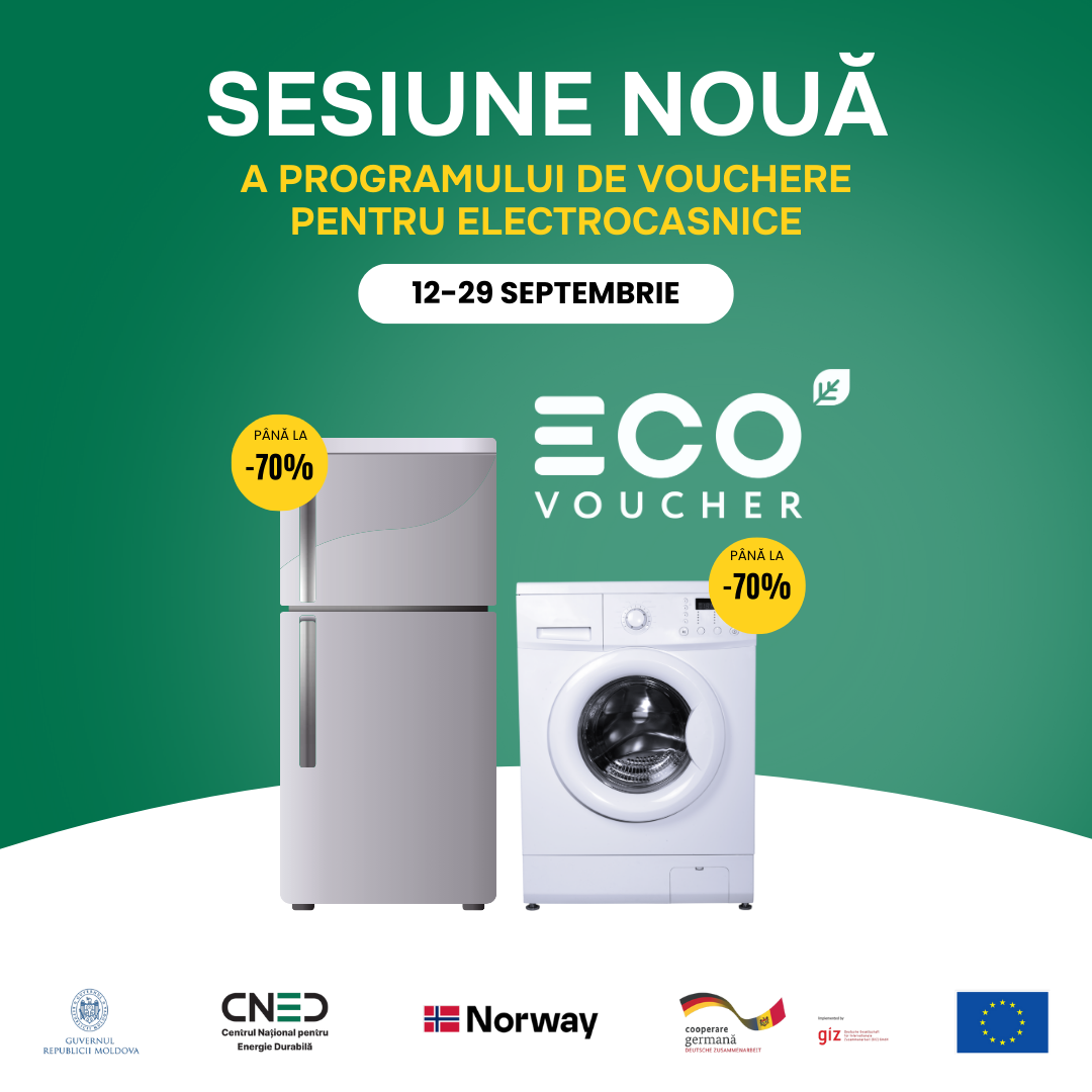 12 septembrie 2025, Chișinău - Alte 5.802 familii din Republica Moldova au posibilitatea să înlocuiască electrocasnicele vechi pe unele noi, eficiente energetic prin Programul EcoVoucher. Voucherele au fost distribuite în cadrul celei de-a 5-a sesiuni din acest an, care a început astăzi, 12 septembrie și se va desfășura până pe 29 septembrie.